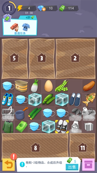 3、在执行任务期间,屏幕左上方会出现任务提示,当你完成任务后,就能获取对应的金额。要是你急于装修房子,由于装修需要资金,此时可以点击下方的食物或衣物进行出售。等金钱积攒足够之后,点击左下角的返回键,即可进入房间。