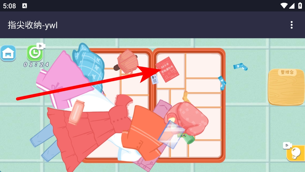 2、当你进入具体关卡,映入眼帘的是杂乱摆放的各类物品,诸如衣物、小物件之类。此时,你需要把这些物品有条不紊地收纳到指定空间里,并合理规划它们的摆放位置。