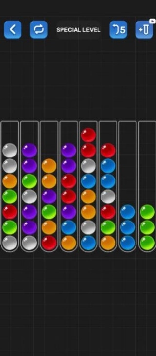 1. 每一关都会给出若干根管子,管子里装着不同颜色的彩球,你得对它们进行逐步分类整理。