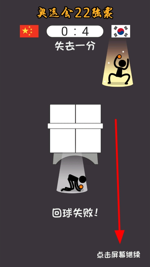 4、要是回球未成功,就会丢掉一分。这种情况下,你能够点击屏幕继续,重新调整自身状态,接着参与对战,努力在后续的回合里得分从而取得胜利。