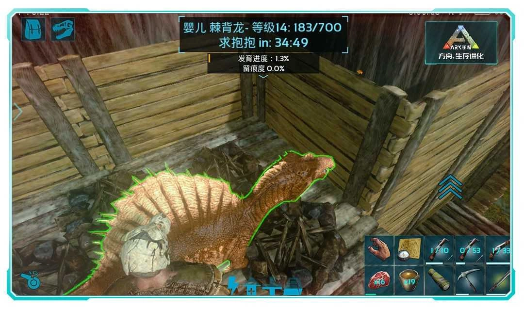 留痕任务中的幼崽食量可不小呢,一定要准备充足的口粮(生肉&果子)。至于何时需要留痕,得留意婴儿、幼崽或者青年恐龙头顶显示的关注倒计时,等计时结束,恐龙就会从三种留痕需求里选择一种。