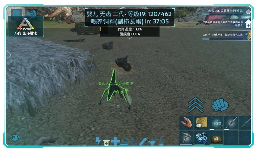 4、将婴儿恐龙放进具有配偶加成的母袋鼠育儿袋里进行留痕操作,能获取双倍留痕,同时还可减缓食物的消耗速度。袋鼠能够携带这些婴儿或小动物:甲龙、巨猿、巨犀、老鹰、鬣齿兽、副栉龙、重爪龙、擒龙、渐渐象、乌龟、鱼鸟、迅猛龙、班龙、麝足兽、窃蛋龙、羊、厚鼻龙、代师、镰刀龙、狼、犀牛、无齿翼龙、袋鼠等等(还有部分就不逐一罗列了)。