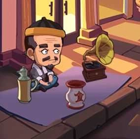 进入后,直接依次点击摊上的三个物品、毯子,接着点击扑克,过程中不要拿任何东西。