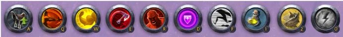 武器装备设有三个专业技能栏(分别匹配Q、W、E),帽子、胸甲以及鞋上各有一个技能栏(分别匹配R、D、F),独特披风上也有一个技能栏。