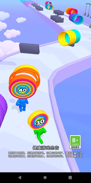 2.轻触屏幕,通过手指在屏幕上向左或向右滑动,助力橡胶人避开危险,同时收集彩色圈圈。