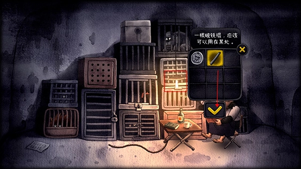 4、紧接着切换至放大镜视角,回到外部区域,点击灯光,借助铁管把灯敲灭,灯熄灭后看守者便会离去。