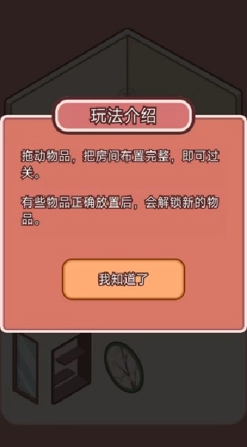 1. 采用拖拽的方式,把物品放置在房间的恰当位置。当物品放置准确无误后,就会解锁新物品。