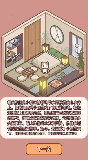 4、收集通关获取的星星奖励,于商城解锁特殊家具及猫咪服饰,充实您的设计素材库。