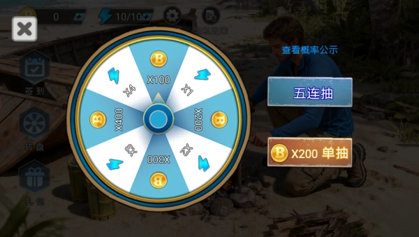 2、进行转盘抽奖,获得随机的金币奖励或者体力值。