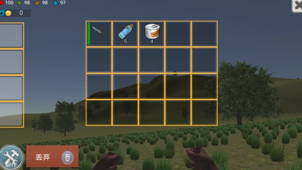 3、翻开你的背包,查看基础物资,可选择丢弃无用物品。
