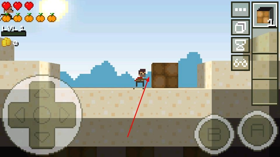 1. 轻触屏幕,开启像素世界的奇妙冒险。操控角色缓缓踏入绿意盎然的草地场景,就此展开探索之旅。在探索过程中,你能够随时观察界面上显示的生命值、等级等关键信息。