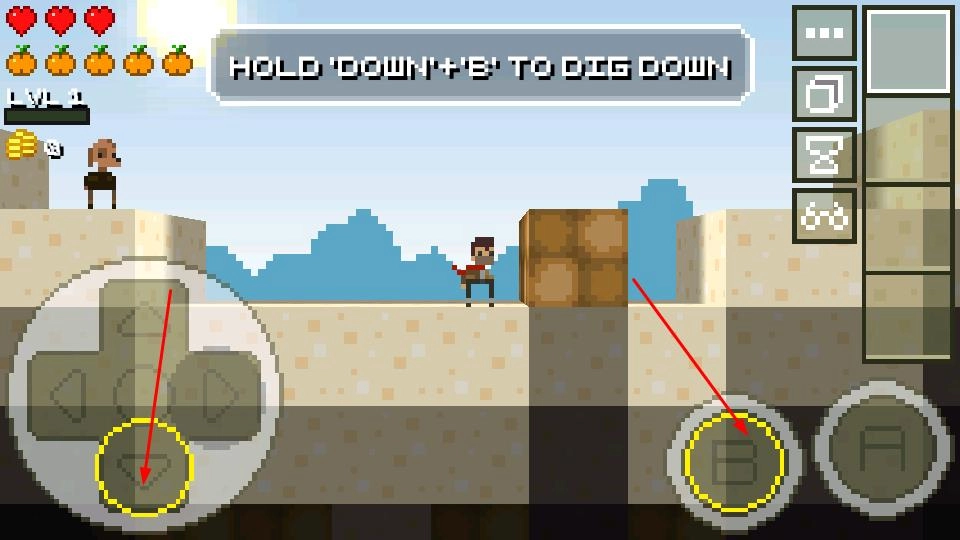 3、同时按住十字键的向下按键与右侧的B键,触发向下挖掘动作,借此能够开辟地下路径、获取资源,还能解锁更多探索方式。