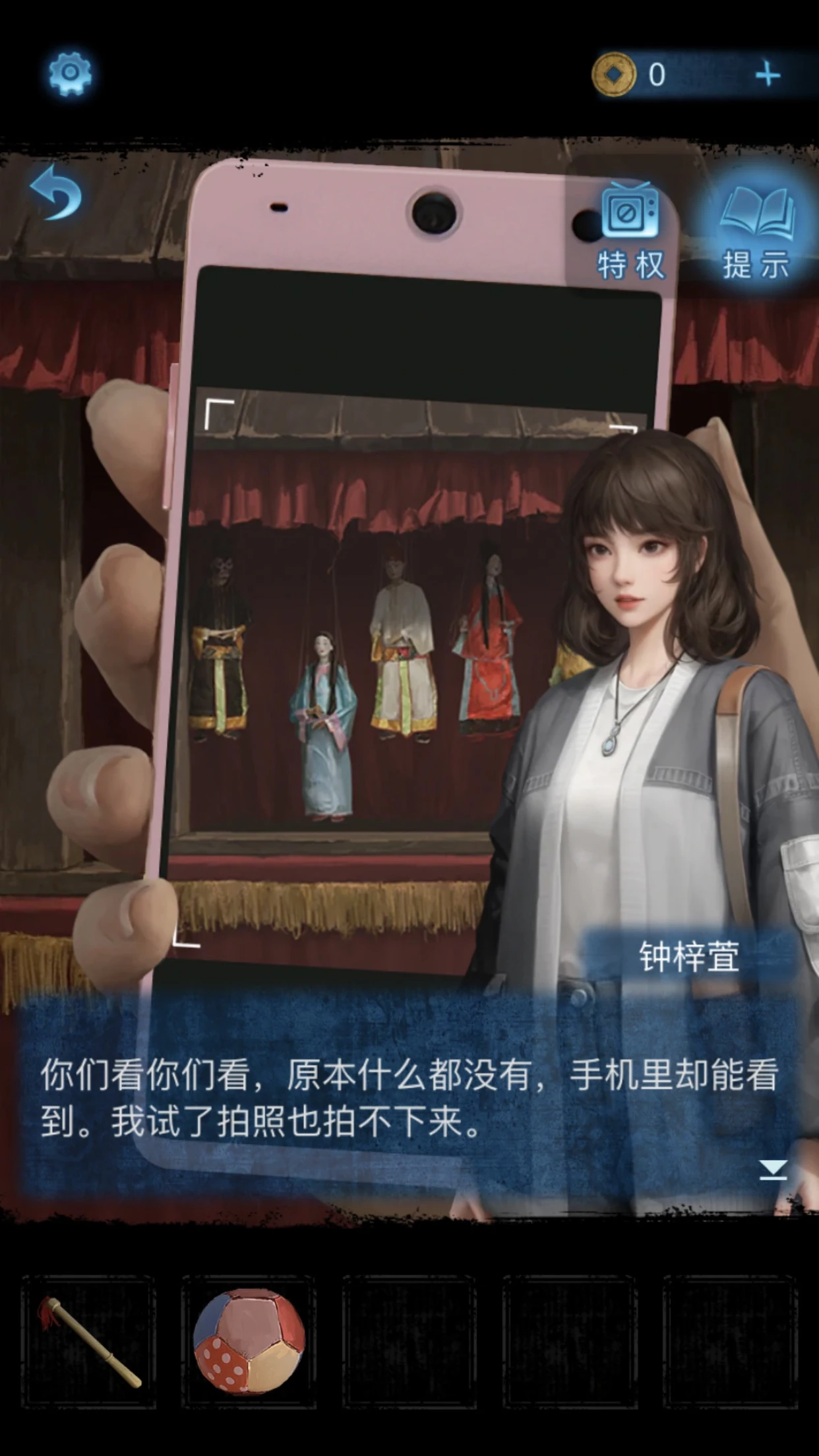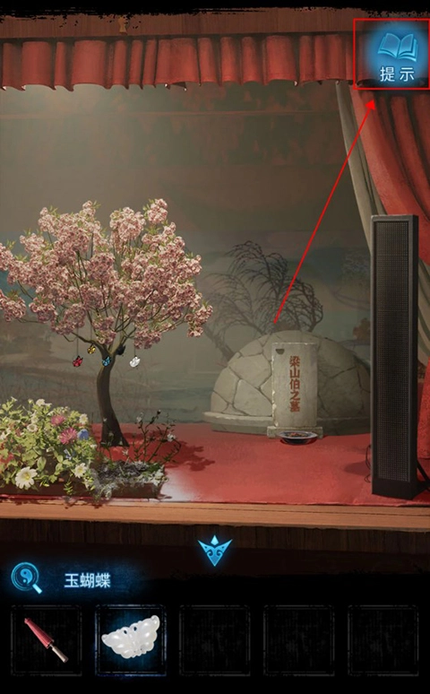 你可以点击右上角的“提示”按钮,来查看当前的线索以及道具的用途。