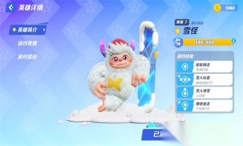 当角色收集进度达到25星时,便能解锁一个名为雪怪的免费角色。作为力量型英雄,雪怪的技能释放前摇较长,需要精准把握时机,但他的攻击伤害十分可观,且部分技能附带霸体效果,能够强行与对手进行对抗。