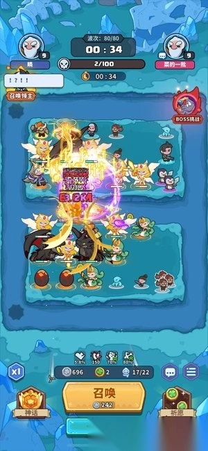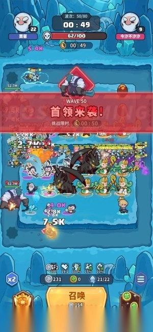 当双方英雄数量达到各有一位高阶神圣角色与龙族角色时,可适度提升顶级英雄的等级;在第五十关过后保留一队远程猎手单位,第五十至六十关期间以单倍速度合成神圣角色,若出现位置冲突的情况,可考虑出售最后一队远程猎手单位。