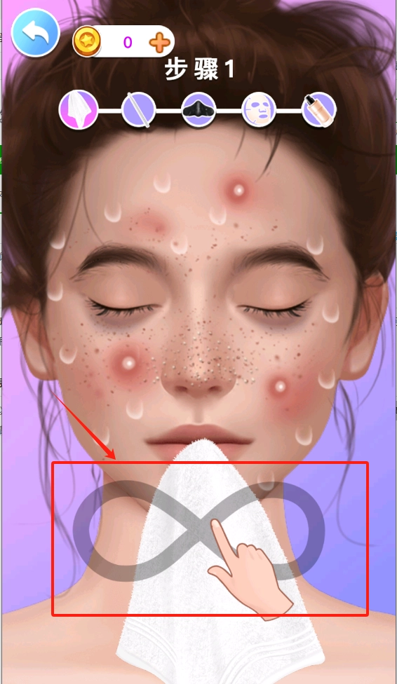第一步提示要先把脸部清理干净,接着涂抹护肤产品,最后用毛巾将颈部擦干。