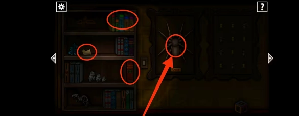 从书架上取走第一张画像碎片以及红色书籍(可在收集要素里查看),接着用刀清理掉右侧的蜘蛛,就能获得心形宝石。