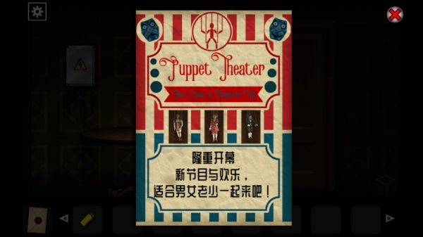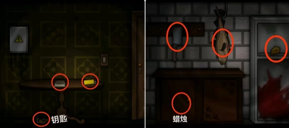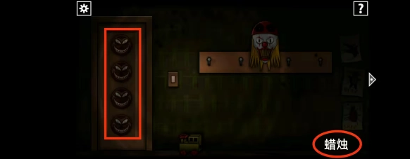 进入那个挂着小丑头像的房间,捡起地上的蜡烛。按照红色书籍里关于月亮朝向的提示,调整好门上的笑脸图案就行。不过现在关键道具还没找到,暂时先不进去了。