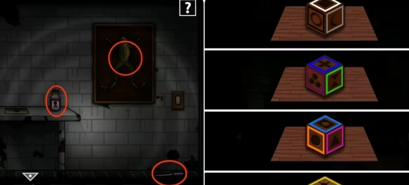 进入实验室取走毒药、死青蛙与螺丝刀,随后依据别墅各场景角落的木方方,再结合木门上的颜色提示找到对应符号将其开启,接着按照书架右上角书排的提示(颜色与高低)调整右侧面具,获取第二张画像碎片。