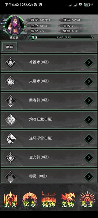 3. 装备出售流程:打开储物界面,点击右上角的“出售”按钮,然后选择需要出售的装备并点击即可完成出售。在“状态-特技”界面中,点击技能右侧的问号按钮即可学习该技能,不过需要先拥有对应的技能书(目前技能书可通过等级任务获取)。