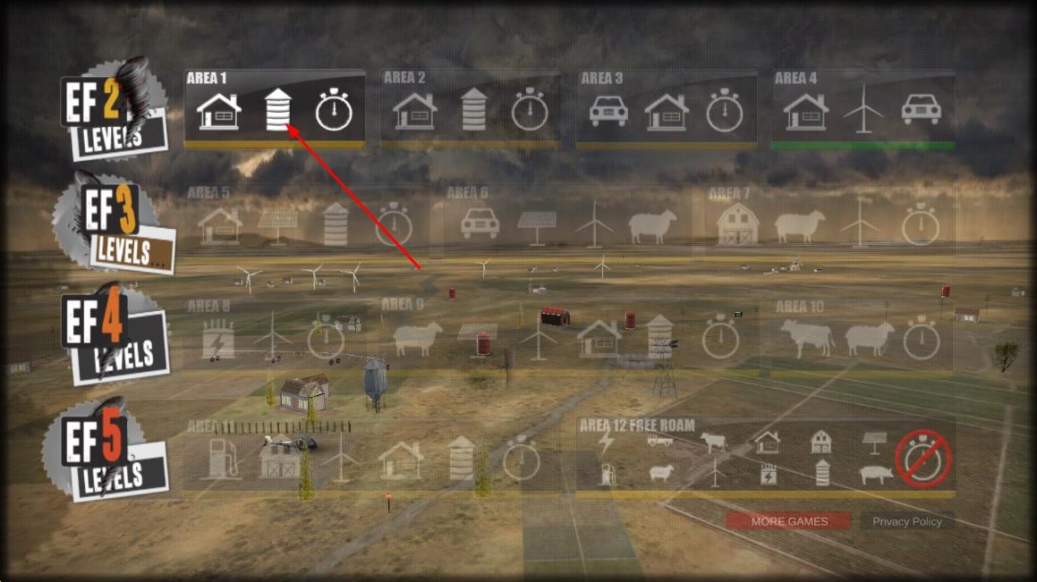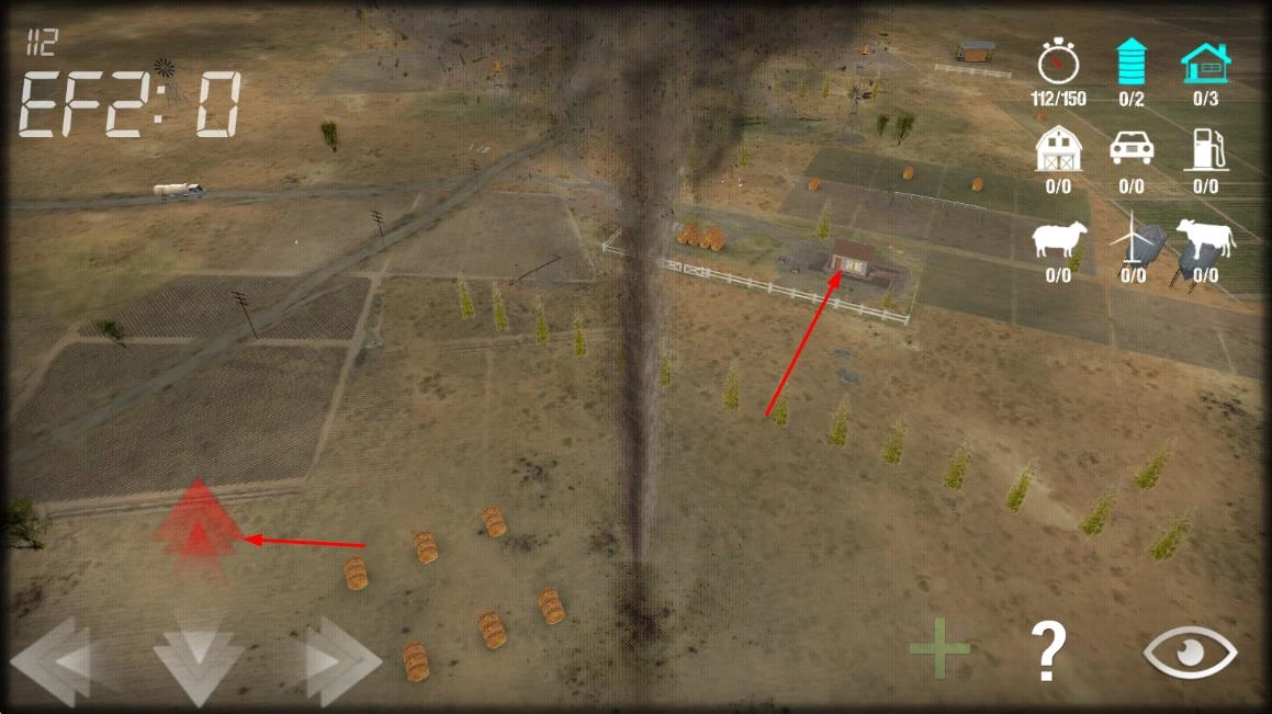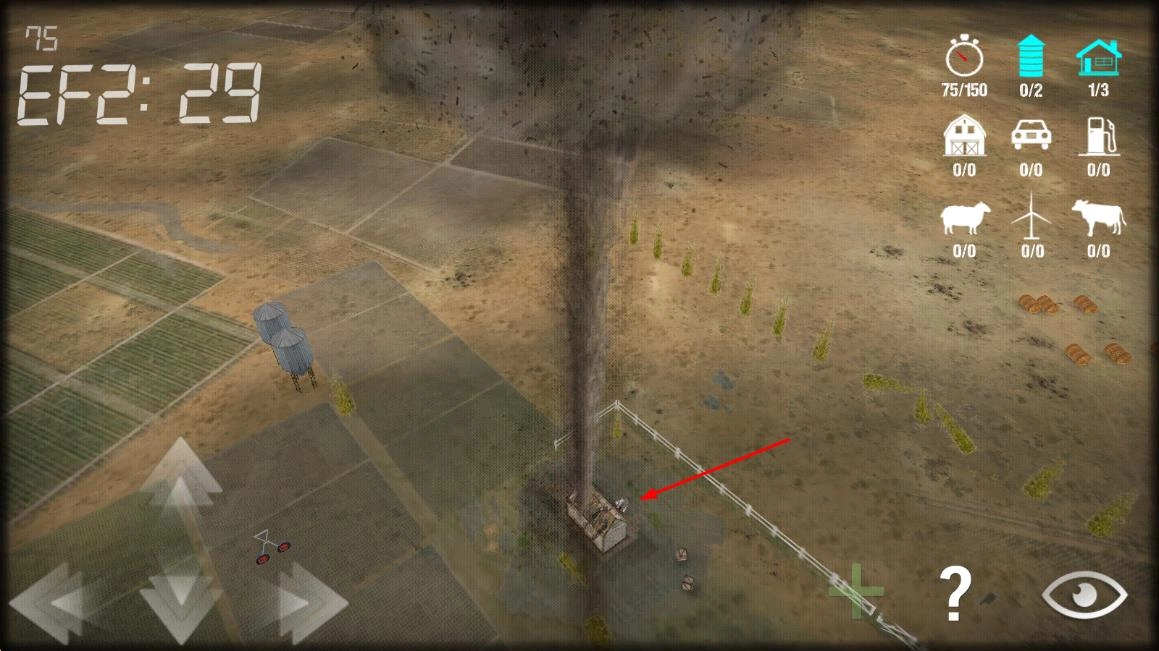 进入游戏后,先挑选初始场景,通过滑动屏幕来控制龙卷风的移动方向。刚开始玩的时候,可以先在乡村区域练习吞噬那些比较低矮的建筑,熟悉一下操作。