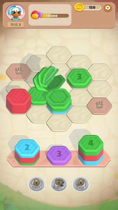 《排序大挑战》是一款趣味十足的益智休闲游戏。在游戏里,你需要了解当前的布局信息,六边形瓷块的数量会清晰呈现,你得找到恰当的分类方法,把相同颜色的瓷块堆叠到一起。当所有颜色的六边形都完成分类后,就能顺利通过这一关卡。游戏中的空格可以放置任意一种瓷块,但玩家仍需依据具体的逻辑顺序来规划位置,这样才能快速抓住对应的机会。待选区域仅有三个位置,玩家可以结合主区域的布局状况,挑选最合适的瓷块与颜色,从而迅速达成最佳效果,成功完成挑战。要是你也对这款游戏感兴趣,那就赶紧来体验一下吧!