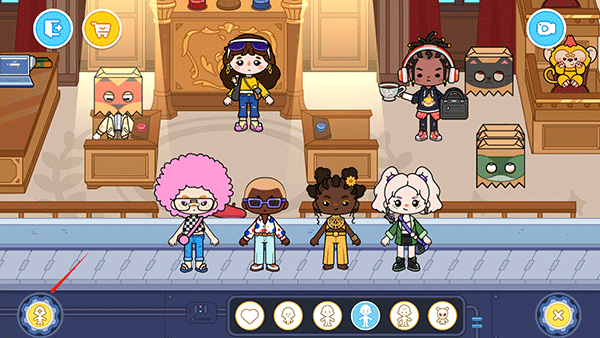 在房间里,你能自由规划房间的布局,还可以点击右下角的角色图标来添加新的角色人物。