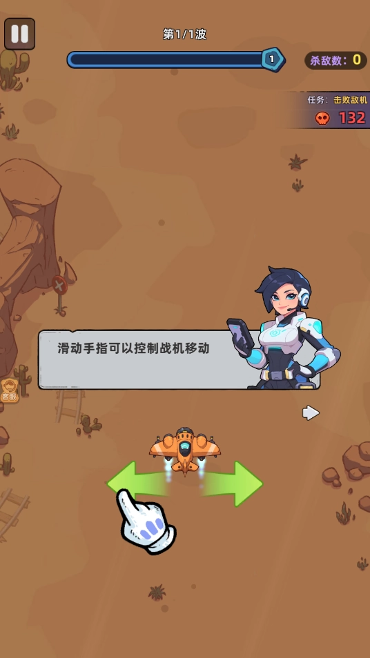 玩家用手指在屏幕上滑动来操控战机的移动方向,既要避开敌机发射的子弹,又要主动对其发起攻击。