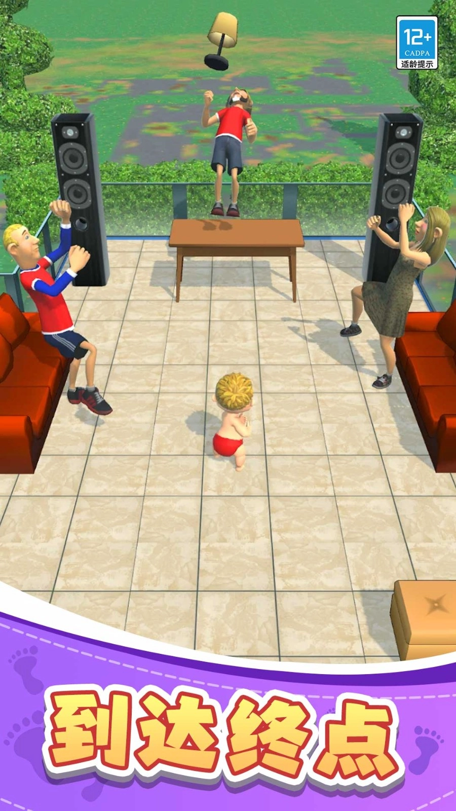 宝宝快些跑起来呀,把各种各样丰富的道具都收集起来用,顺顺利利地到达终点,可千万不能被爸爸给抓住啦。