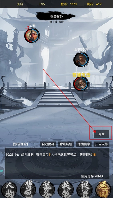 离线挂机:目前离线挂机需要击败当前地图BOSS100次以上,离线时间最多为480分钟,收益为每分钟40次,只有经验和金币收益。