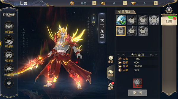 幻化:使用幻化功能能够改变仙兽的外观。并且,已激活的仙兽所带来的属性加成是可以叠加的,激活的仙兽数量越多,能够获得的战力加成也就越丰厚哦。