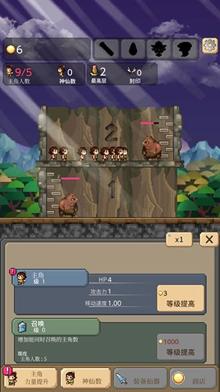 楼层越高,敌人的实力就越强,大家得持续召唤葫芦娃,只有具备高阶战斗能力的葫芦娃角色,才能支撑你一直走下去。