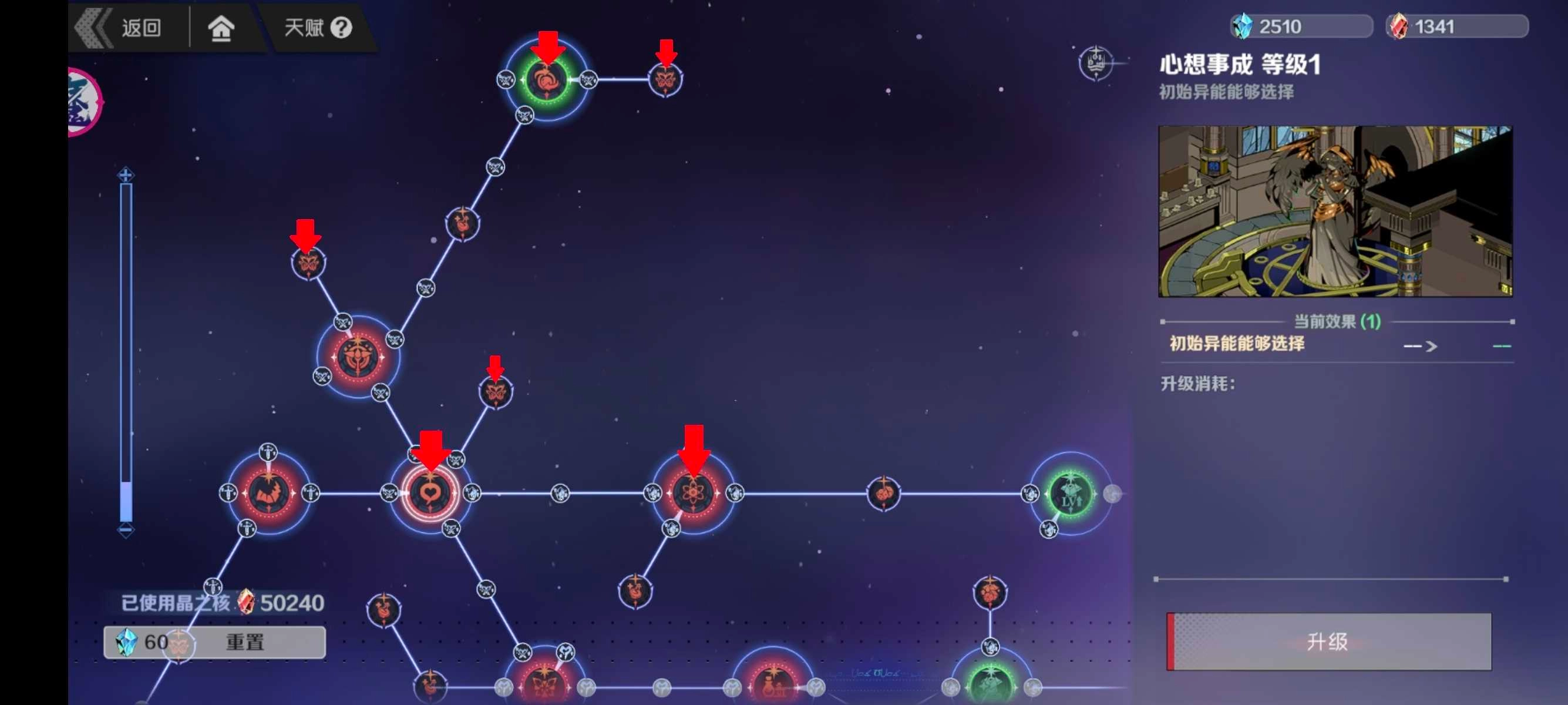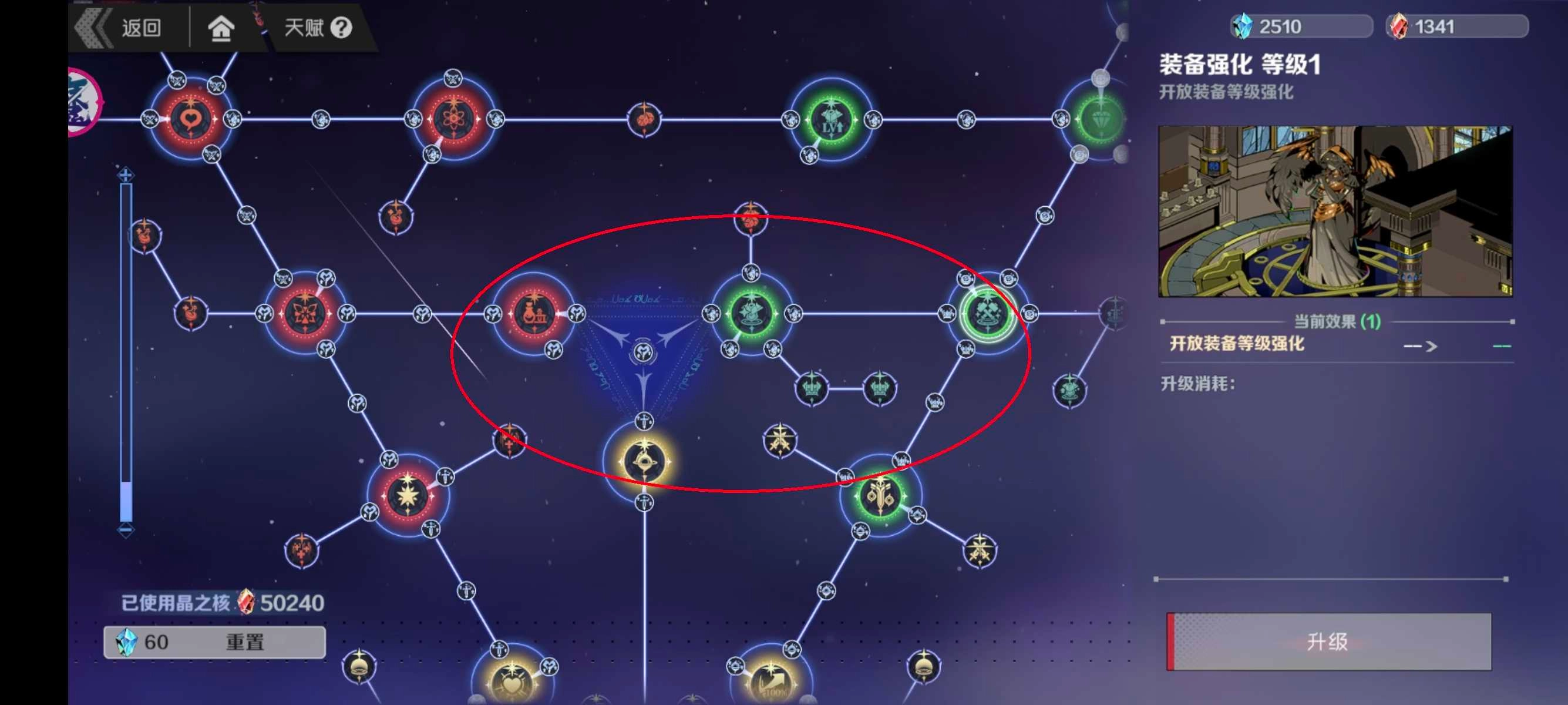 天赋系统解锁后,我们需要先把上图所示中心的4个大天赋点亮。