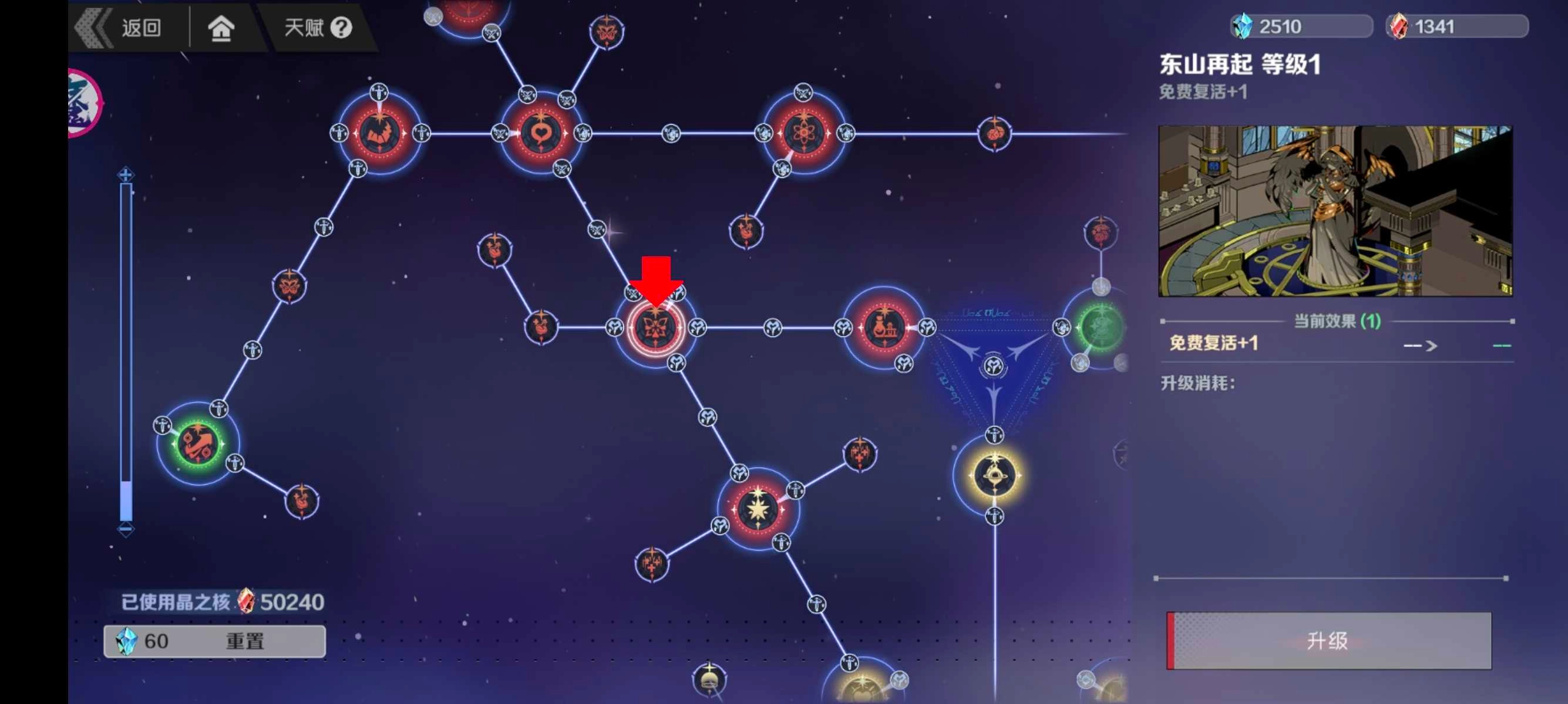 点好黑市天赋后,我们可以转到左上方的对局功能区。这片区域的天赋主要是对每次对局内的功能进行增幅,建议优先点出免费复活、初始异能选择、魔器刷新、魂石刷新,还有旁边那个开局自带魂币增加的小天赋。把这些点完后,对局里的功能性会增强不少,能更快拿到想要的法盘和魔器,提升很明显。要是中途遇到前置条件不够的情况,也可以先点一些其他小天赋过渡。
