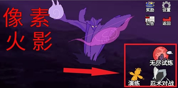 然后玩家就能从无尽、演练、忍术这三个对战模式里挑选自己心仪的,开启对战之旅啦!