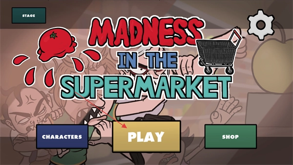 进入《疯狂超市2》的主界面后,点击“PLAY”按钮就能启动游戏,通过“CHARACTERS”选项可以查看角色,而“SHOP”选项则能进入商店。