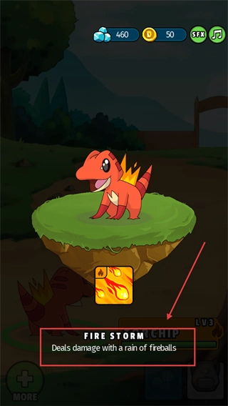 精灵【TORCHIP】升级至3级后,将解锁全新技能【FIRESTORM】,该技能可召唤火焰球雨对敌人发起攻击,从而有效提升战斗效率。