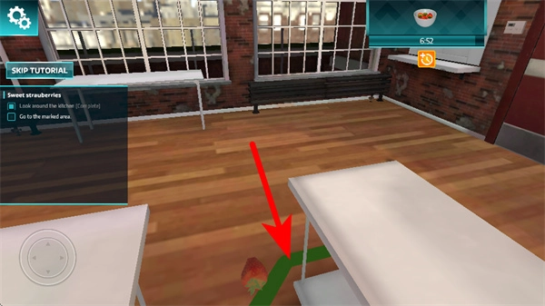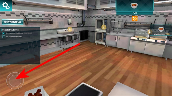 在职业模式厨房内,通过移动按钮,前往标记区域。