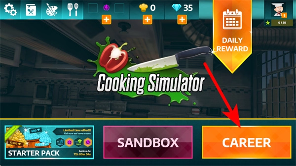 在烹饪模拟器的主界面中,找到并点击CAREER选项,即可进入职业模式页面。