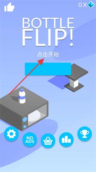在游戏启动界面,点击【点击开始】按钮,即可进入游戏的跳瓶挑战关卡。