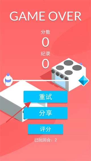 当挑战失败并出现【GAME-OVER】界面时,点击【重试】按钮即可重新开启跳瓶挑战。