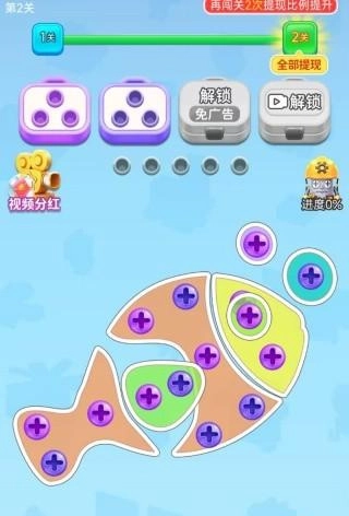 《螺丝拆一拆》是一款主打拧螺丝与分类消除玩法的休闲解压游戏。玩家需观察不同颜色、形状的螺丝,按照规则拆解后放入对应容器或位置;每一关都设有特定目标与限制,难度跨度从基础的配色匹配入门,到需规划操作顺序的复杂布局挑战。游戏画面简约、操作直观,既能帮助玩家放松解压,也能锻炼观察能力与策略思维。