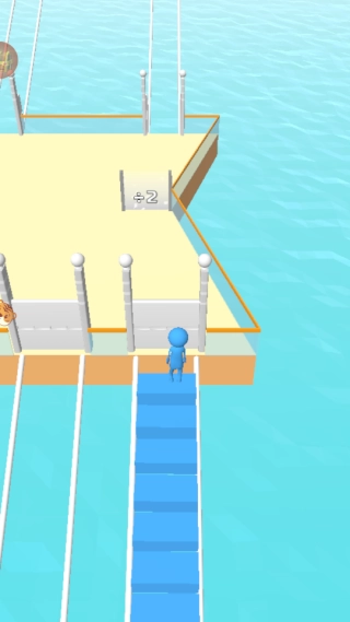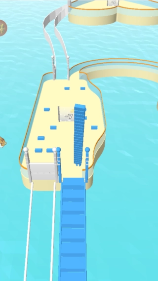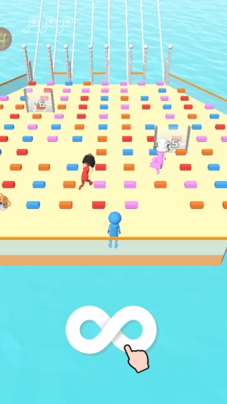 点击进入游戏后,操控角色去收集和自身颜色一致的砖块,用这些砖块搭建云梯,从而向上进行闯关。