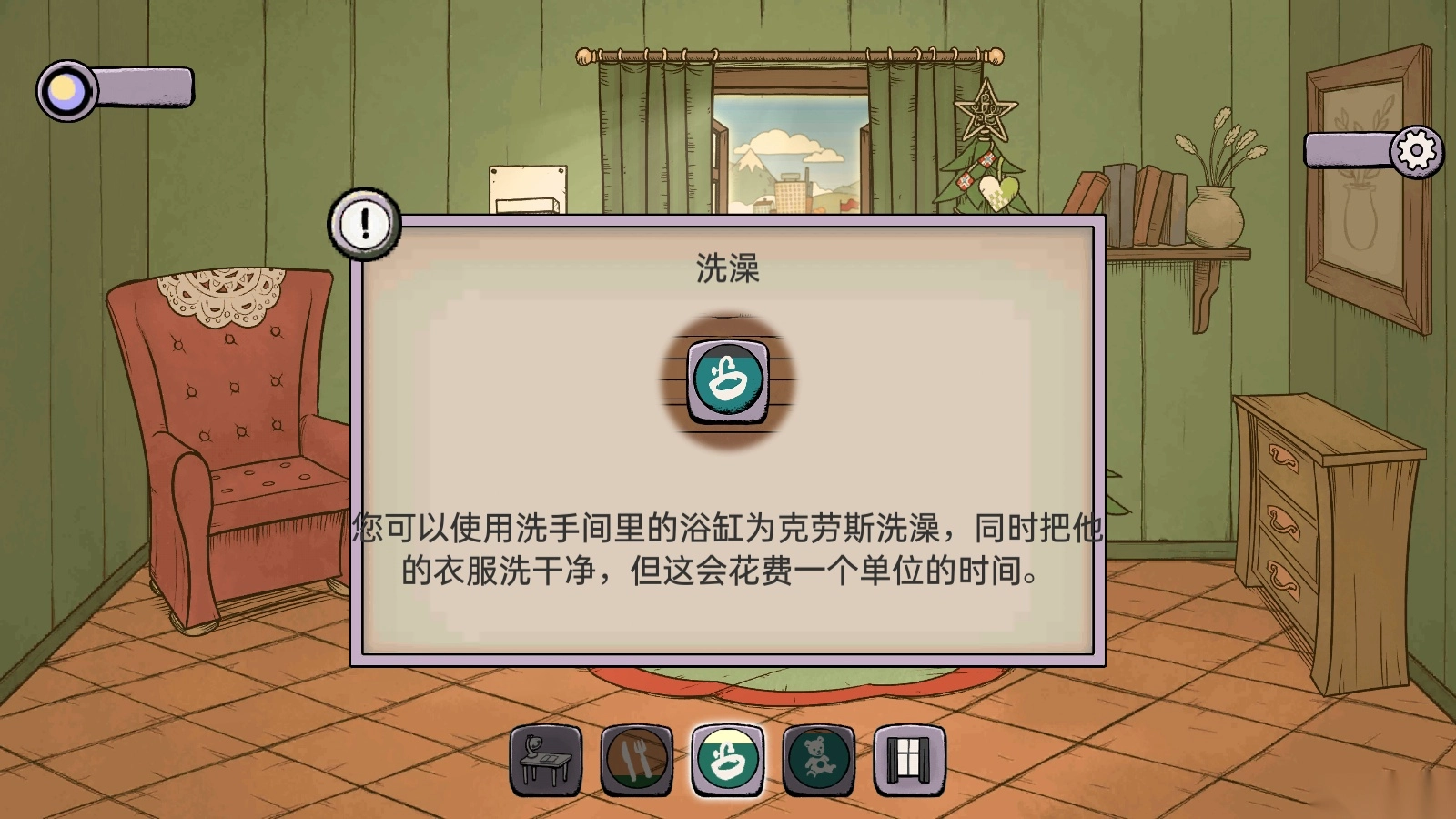 8、您可利用洗手间的浴缸给克劳斯洗澡,顺便把他的衣服洗净,不过这需要耗费一个单位的时间。