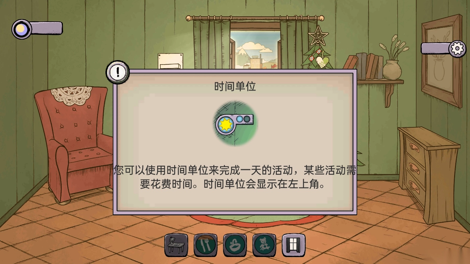 6、您能够借助时间单位来安排一天的活动,部分活动是需要消耗时间的。时间单位会在左上角显示。