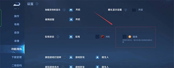 4、成功开启隐身状态后,回到大厅就能在左侧头像框处看到隐身标识,这时好友便无法查看你的在线状态,也没办法邀请你组队。需要注意的是,隐身功能每周最多只能使用5次,建议谨慎操作。