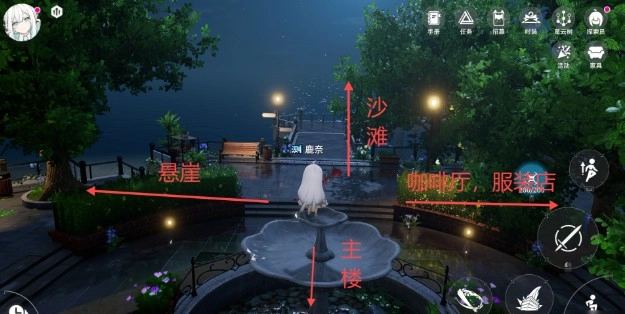 喷泉的左下角与右下角各有一处材料点位,经测试,刷新的材料都属于花类。队长可按照从右往左的顺序着手采集,取完喷泉附近的资源后,就正式开启跑图流程。