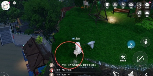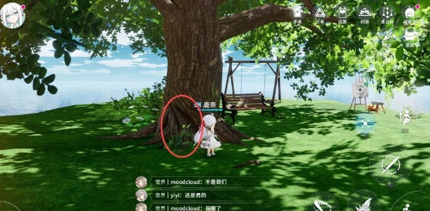 继续往上走,能看到大树、画板和秋千,在这些设施的周边一共有两处虫类刷新点与一处木材类刷新点。