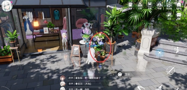 出来之后,往服装店的方向走,就能看到店门前摆放的花饰位置了。