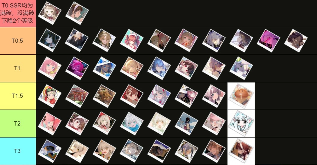 尽管上面这份节奏榜的评价划分了5个等级,可不同等级之间的强度落差实在太明显,T1级别之外的角色不建议优先投入资源培养。